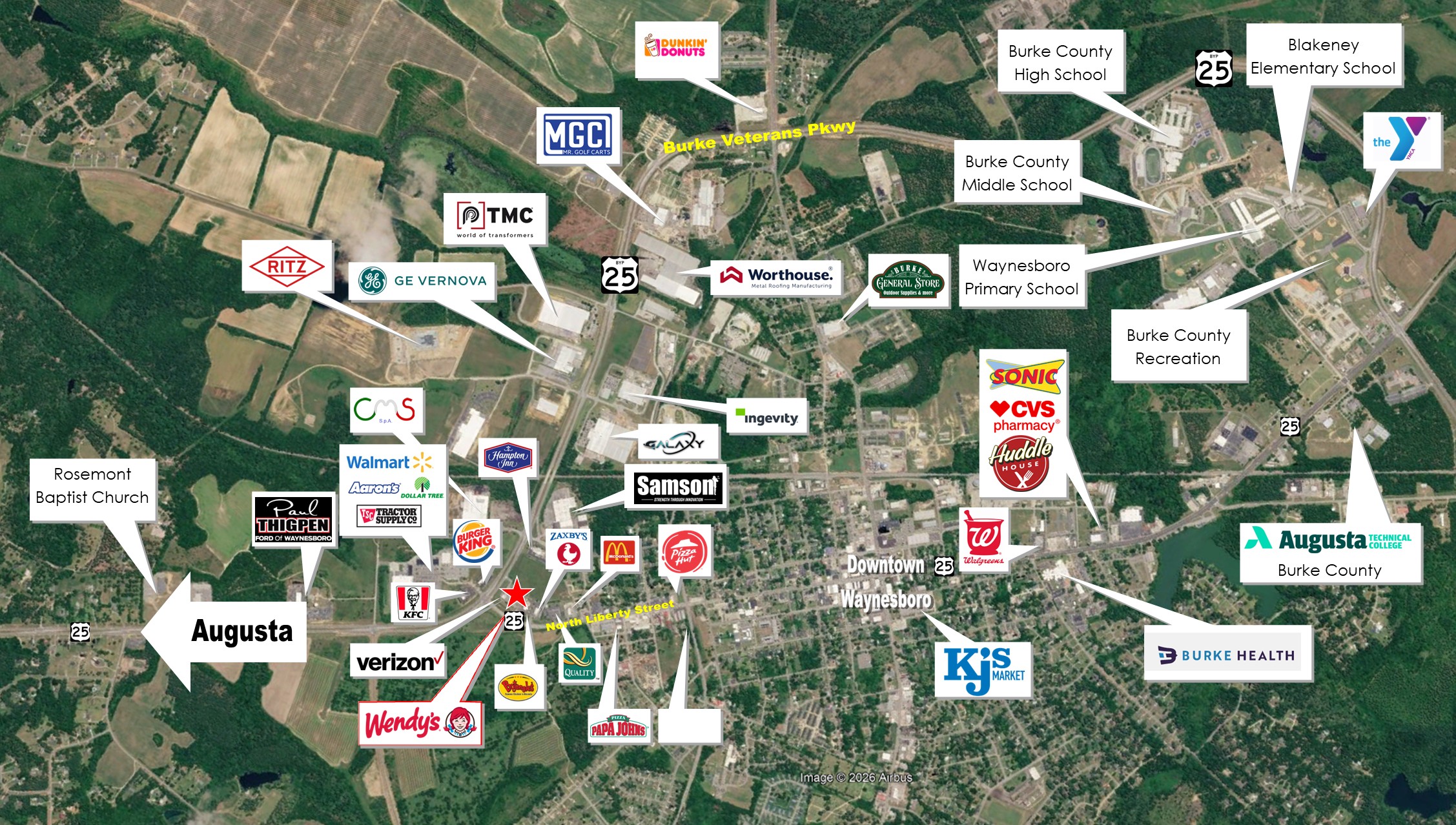 Oswald Cooke & Associates is pleased to present a single tenant Wendy’s restaurant located at 200 Virginia Parkway in Waynesboro, GA for sale. The 20-year term commenced in April 2022 and offers (4) 5-Year renewal options. The lease is subject to 8% increases every 5 years with the next bump coming in April 2027. The 2,926 square foot restaurant is guaranteed by JAI Augusta, LLC. National Retailers in the immediate area include: Walmart Super Center, Tractor Supply, Dollar Tree, KFC, Burger King, Verizon, Zaxby’s, McDonalds, and many others.